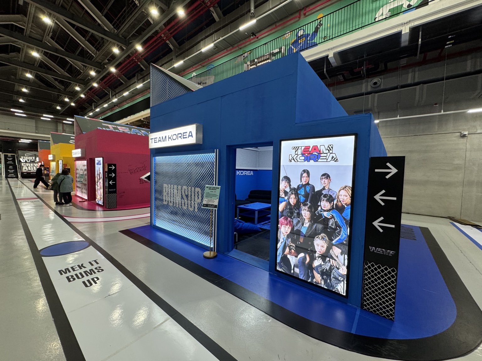댄스 크루 팀 이름으로 꾸며진 전시 부스들이