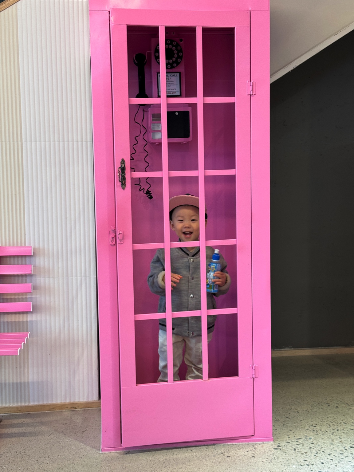 전화박스 안에 들어가 “사진 찍어줘~” 하기도 하고,