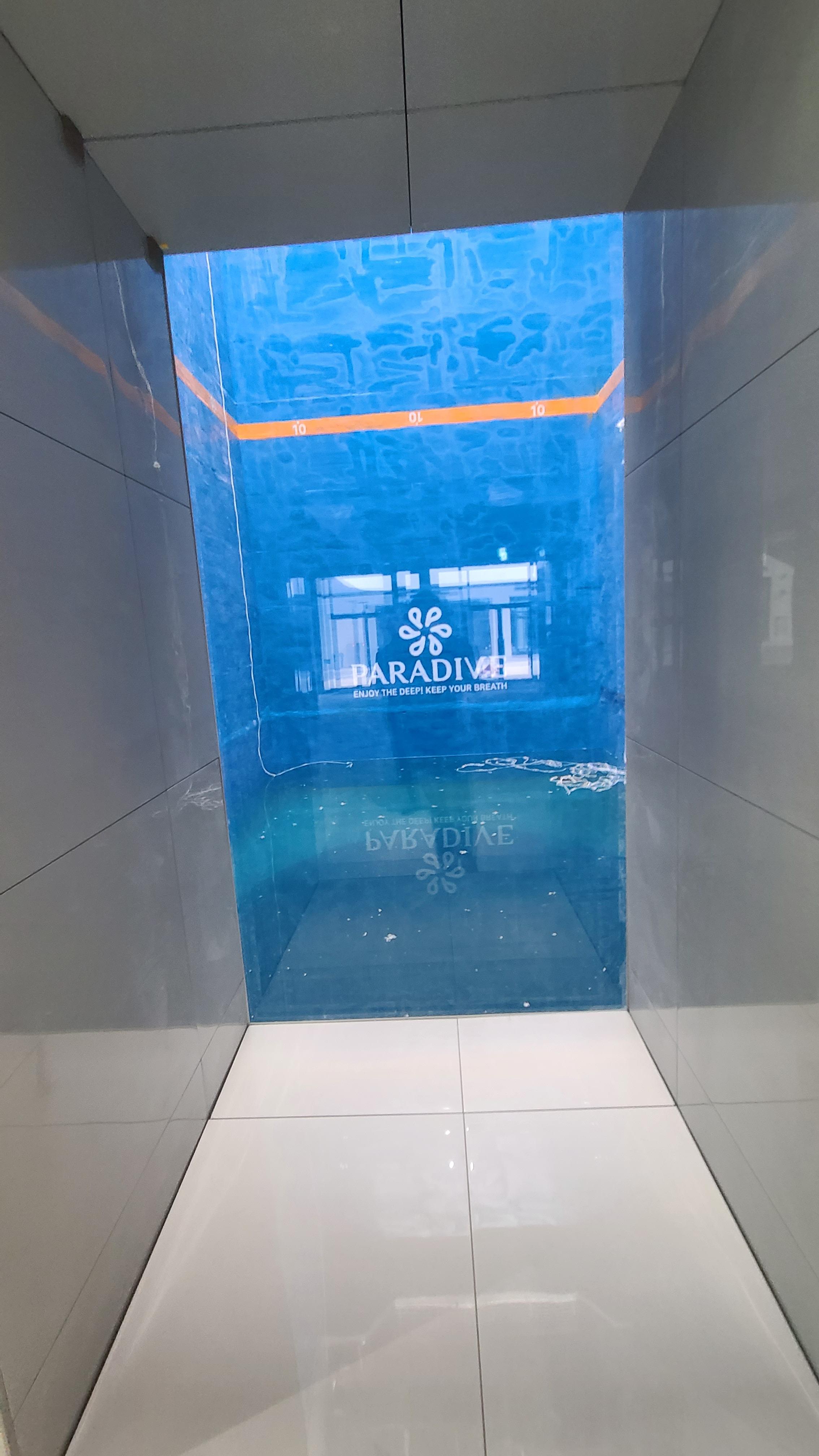 바로 '35m 수심의 아시아 최대 규모 스쿠버 다이빙 풀'이었습니다.외부에서도 수조 내부가 보이는 설계로 많은 인파가 몰릴 것이라는 기대가 있었고,